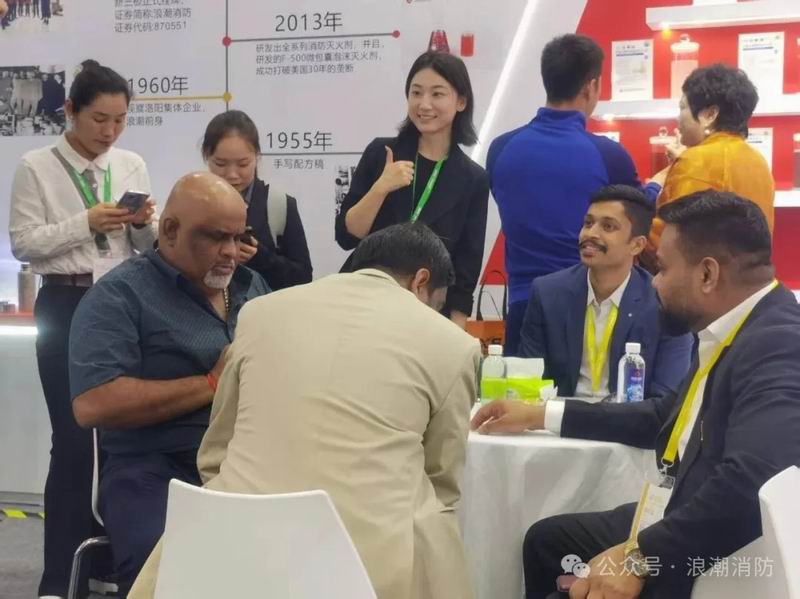 展會期間,浪潮消防展臺接待了來自全球30多個國家和地區的客戶及采購團,公司技術團隊通過現場演示、案例解析等形式,深度解讀產品在鋰電池火災防控、大型儲罐、管道防護等場景的應用方案。憑借F-500滅火劑的國際口碑(已銷往40余個國家)及氣凝膠材料與防火涂料的技術突破,公司現場達成8項戰略合作意向,涵蓋新能源企業、海外消防機構等領域。此外,公司代表受邀參與“第五屆中國石油石化健康、安全與環保(HSE)技術交流大會”,分享環境友好型滅火技術的研發與廢舊泡沫處置經驗及氣凝膠產品在石油行業的廣泛使用,進一步擴大企業在行業的話語權。